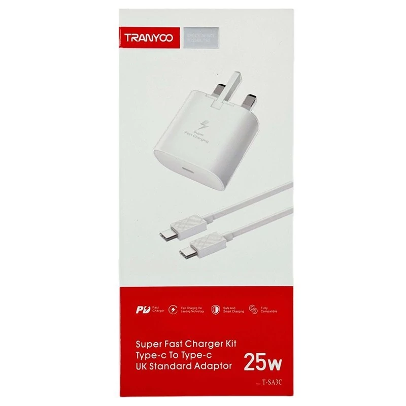 شارژر دیواری سوپر فست 25 وات ترانیو Tranyoo T-SA3C با کابل دوسر تایپ سی